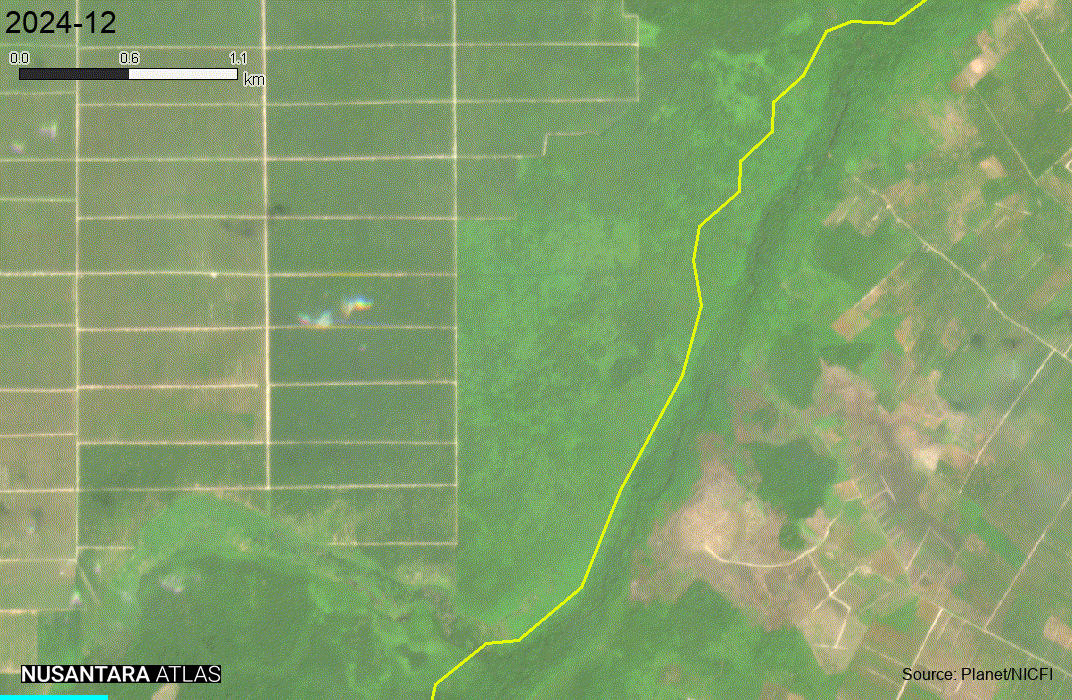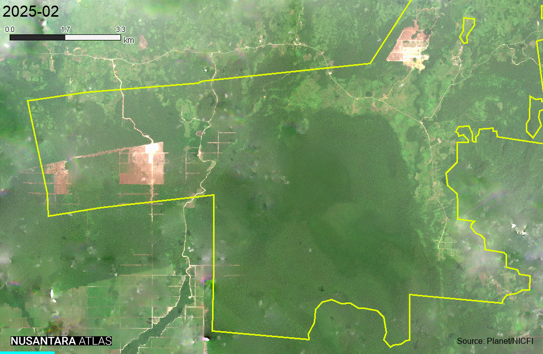 First Borneo Group ranked as the second largest actor, with 2,940 hectares of forest conversion. In contrast to Fangiono, whose clearing was concentrated in Papua, First Borneo’s expansion occurred predominantly in West Kalimantan across three concessions (PT Equator Sumber Rezeki, PT Borneo International Anugerha, and PT Khatulistiwa Agro Abadi). Much of this clearing is located within peat swamp forests surrounding Danau Sentarum National Park, a globally significant wetland ecosystem for climate mitigation and orangutan habitat. Satellite observations further suggest that clearing associated with PT Equator Sumber Rezeki extends beyond its mapped concession boundary.